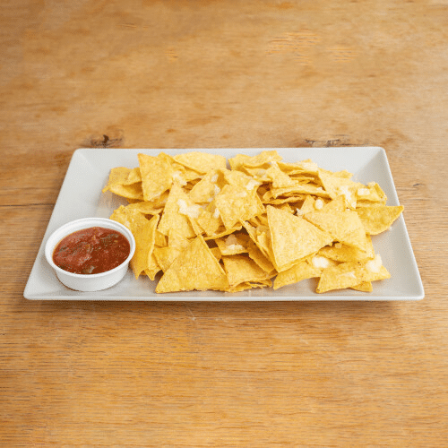 Tortilla gefüllt mit saftig gebratenem Rinderhackfleisch, Gemüsepüree, scharfer Salsa, mit geriebenem Edamer Käse überbacken und mit frischem Salat garniert
